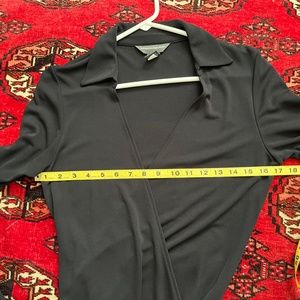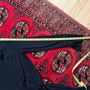 Banana Republic classic wrap dress in black viscose/polyester blend. Sophisticated dress that can go from work to an evening out. Pointed collar, deep v-neck. Measurements in photos. Excellent used condition.