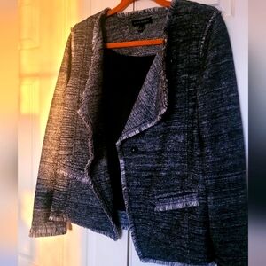 Banana Republic black and gray blazer with fringe details. Perfect for a sophisticated look.