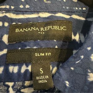 This Banana Republic shirt features a sleek black and gray design, perfect for casual outings. Crafted from lightweight fabric, it offers a comfortable fit with a classic collar and short sleeves. The subtle pattern adds a touch of sophistication to your everyday look.