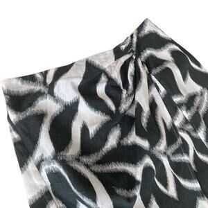 This Banana Republic long skirt features a striking black and off-white leaf pattern. Perfect for adding a touch of nature-inspired elegance to your wardrobe. The flowing design ensures comfort and style, making it ideal for both casual outings and special occasions. Its versatile pattern makes it easy to pair with a variety of tops and shoes. A must-have piece for any fashion-forward individual! Don't miss out – add it to your collection today!