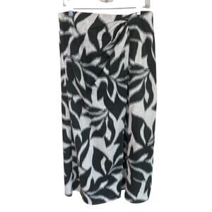 Banana Republic Black and Off White Leaf Patterned Long Skirt - Size 10