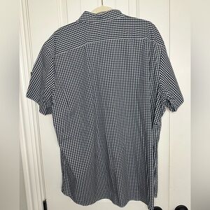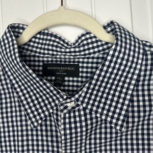 This Banana Republic shirt features a timeless black and white checkered pattern, perfect for casual outings. Crafted from lightweight material, it offers a comfortable fit with a classic button-down style. Ideal for adding a touch of sophistication to your everyday wardrobe.