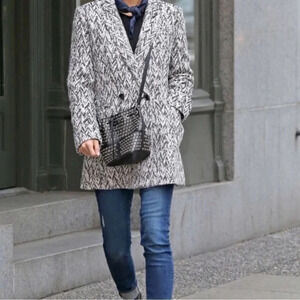 Banana Republic Black and White Chevron Print Jaquard Coat Jacket Size XS