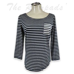Banana Republic Black and White Left Side Pocket Long-sleeve T-shirt Size Small