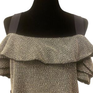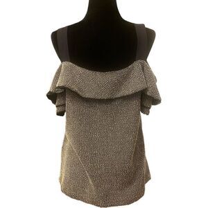 Banana Republic Black and White Off Shoulder Cold Shoulder Tweed Top Sz Large