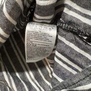 Chic button-up shirt with black and white stripes. Ideal for versatile styling.