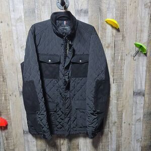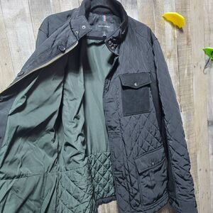 Details: heavyweight, front pockets, full zip and button closure, very warm and durable, polyester lined