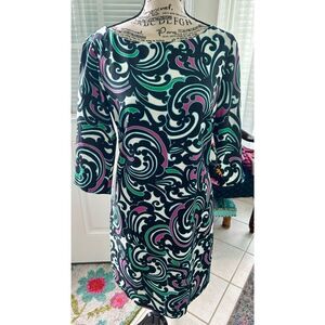 Banana Republic size 4 Black Pink Green Scroll Swirl 3/4 Sleeve Shift Dress