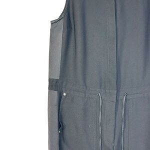 Perfect condition black crepe button front jumpsuit. Stretchy knit side panel. Gathers at the waist, sleeveless, pockets.