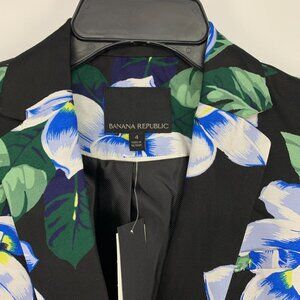Banana Republic Blazer Black Floral Print Chelsea Button Linen NWT