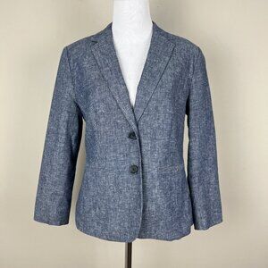 Banana Republic Blazer Jacket Womens 4 Blue Chambray Linen Cotton 2-Button Office Career Preppy Business