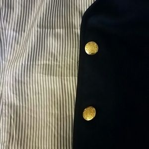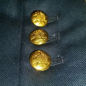 New With Tags. Gold Embroidered Buttons on Frint and Cuff Links. Silk-like Interior. 4-Pocket. 2 Front Buttons, 3 Buttons on each cuff link.
