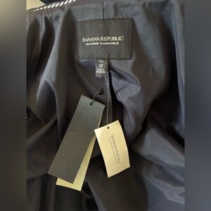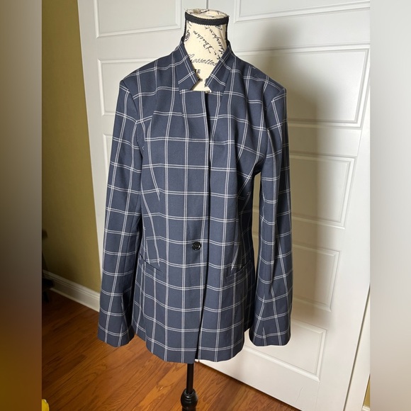 Banana Republic blazer, NWT Banana Republic, size 12 blazer, windowpane blazer, navy blazer, check print blazer, office blazer, career jacket, structured blazer, professional outfit, interview attire, women’s workwear, classic blazer, business casual