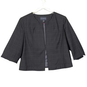Banana Republic Blazer Womens 12 Black Cropped Windowpane Lined 3/4 Sleeves
