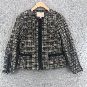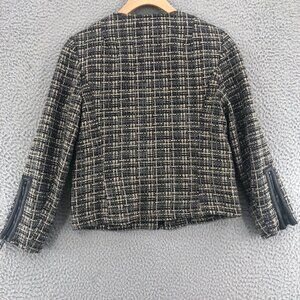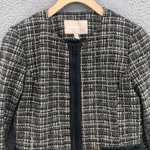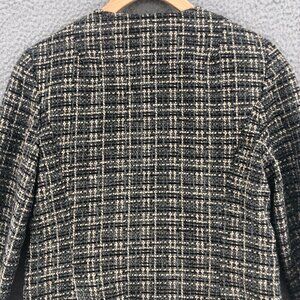Banana Republic Blazer Womens 2 Petite Gray Wool Blend Tweed Zip 3/4 Sleeve PU