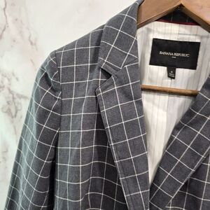 Banana Republic Blazer Womens 4 Small Gray Plaid Windowpane Jacket Two Button