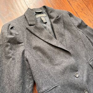 Timeless and versatile, this women’s size 4 Banana Republic blazer was Made in Italy from a luxurious wool blend for a refined look and feel. The tailored fit, structured shoulders, and charcoal gray hue give it a quiet luxury aesthetic—perfect for office wear, academic chic layering, or elevated minimalist style. Wear it with trousers for polished workwear or drape over jeans for modern street style.