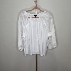 Banana Republic Blouse Embroidered Balloon Sleeves White Medium