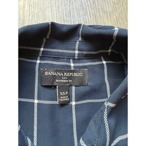 Banana Republic Blouse, Navy Blue White, Size XSP, Button down back, V Neck