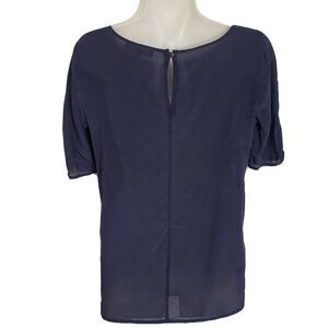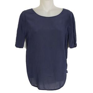 Banana Republic Size Small S Tee Blouse Blue Short Sleeve Pullover 100% Silk Sheer
