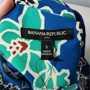 Banana Republic Blouse Top Small Blue Green Floral Split Back Blouse Women NWT