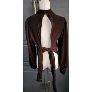Banana Republic Blouse Womens Chocolate Velvet Mock Neck Open Back Tie Waist Med