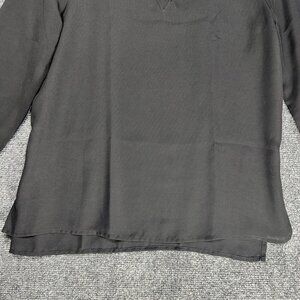 Banana Republic Blouse Womens Small Petite Black Semi Sheer V Neck Gold Detail