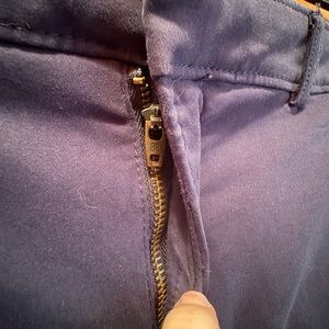 These Banana Republic pants feature a chic ankle-length design in a sophisticated blue hue. Crafted with a tailored fit, they offer a polished look suitable for both casual and formal settings. The subtle texture of the fabric adds a touch of elegance to these versatile cropped pants.