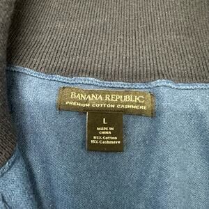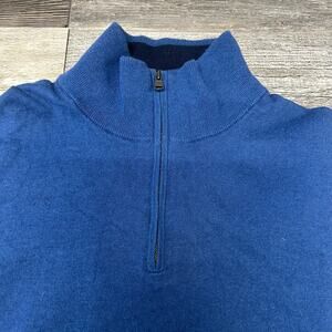 Banana Republic Blue Black Mens L Cotton Cashmere Blend 1/4 Zip Pullover Sweater