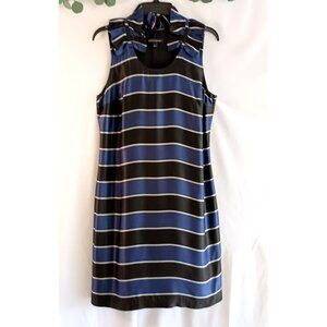 Banana Republic Blue Black Satin Ruffle Neck Sleeveless Dress Size 8 Lined