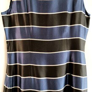 Elegant and timeless, this Banana Republic satin dress features a ruffle neckline, sleeveless cut, and a flattering fit that transitions effortlessly from work to evening wear. A beautiful mix of deep blue and black tones, this fully lined dress offers structure and flow in all the right places.