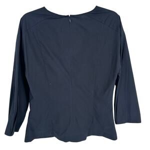 Banana Republic Blue Blouse 3/4 Sleeve Pleated Crewneck Workwear Office Size S