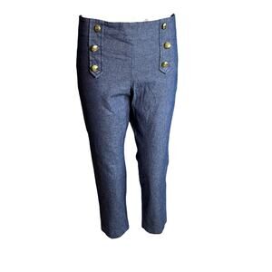 Banana Republic Blue Chambray Cropped Pants 8 Denim “Sloan” Sailor Style Buttons