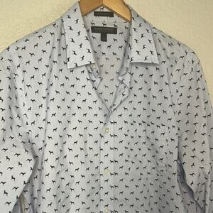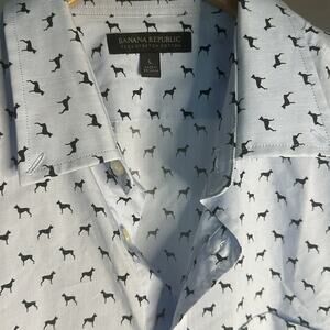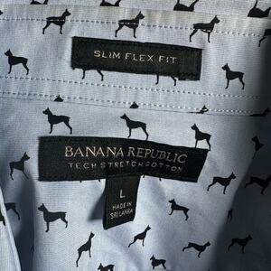Banana Republic Blue Dog Button Up Shirt Large Tech Stretch Cotton Slim Flex Fit