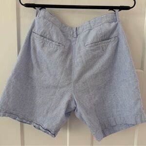 These Banana Republic shorts feature a sleek flat front design in a vibrant blue stripe, with a 7” inseam. Perfect for a stylish yet casual look. Crafted with attention to detail, they offer a comfortable fit ideal for warm weather outings. The classic style ensures versatility, making them a staple in any wardrobe.