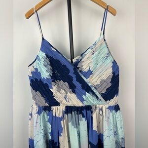 Banana Republic Blue Floral Empire Waist Knee Length Dress with Pockets