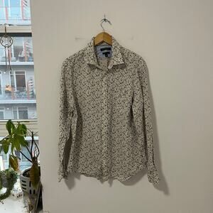 Banana Republic Blue Floral Print Button Up Camden Fit Linen Top Size Large. Excellent condition. White with blue floral print. Collared. Full button up top. Long Sleeve.