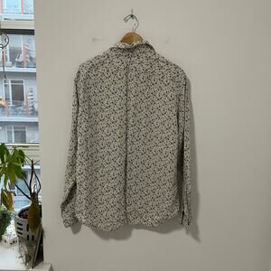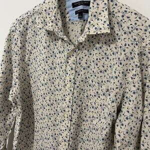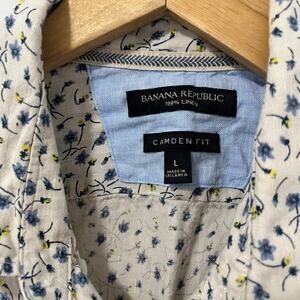 Banana Republic Blue Floral Print Button Up Camden Fit Linen Top Size Large