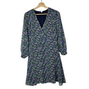 Banana Republic Blue & Green Floral Long Sleeve Wrap Mini Dress