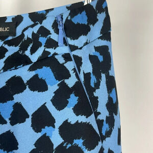 Banana Republic Blue Leopard Print Double Slit Midi Skirt