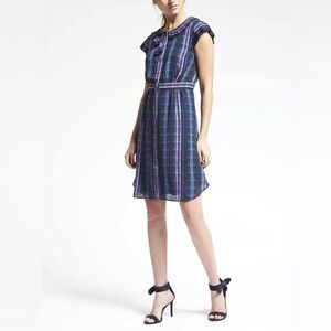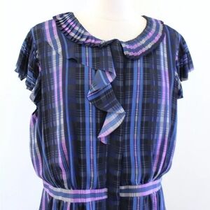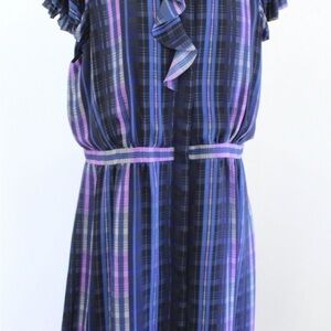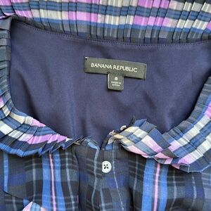 Banana Republic Blue Multi Color Plaid Pleated Ruffle Neck Shirt Dress Size 8