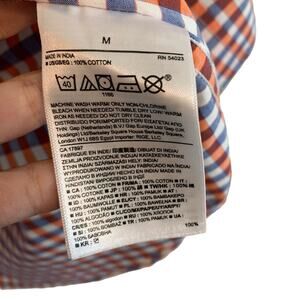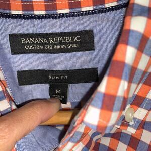 Banana Republic Blue Orange Mini Check Plaid Long Sleeve Button Down Dress Shirt
