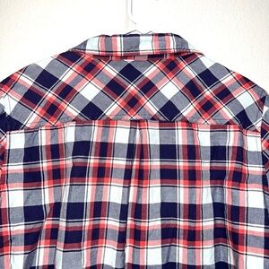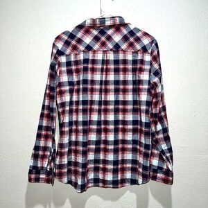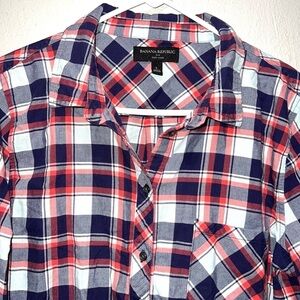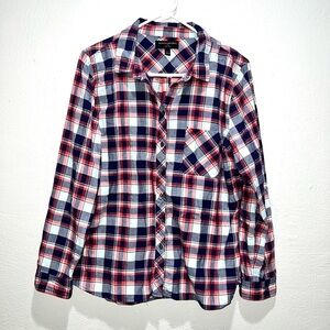 In good condition. Banana Republic Blue Red Plaid Long Sleeve Button Down Shirt Women Size Large
