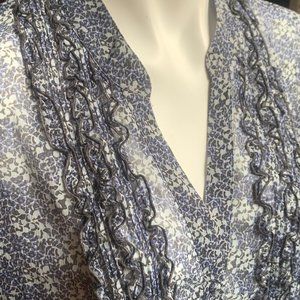 Breezy Banana Republic Dark Blue and White Sheer Button Down Tunic in size XL. Excellent Used Condition.