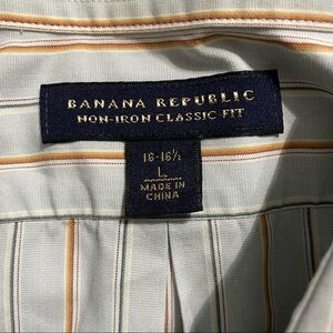 Banana Republic Mens Size 16-16 1/2 Large Blue Striped Classic Fit Button Up Shirt in good used condition. No stains, tears or rips.