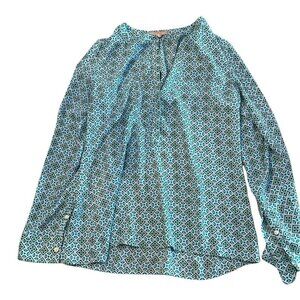 Banana Republic Blue Turquoise Geometric Pattern Shirt Women’s S Long Sleeve