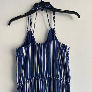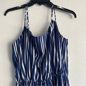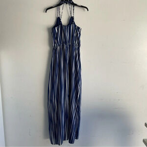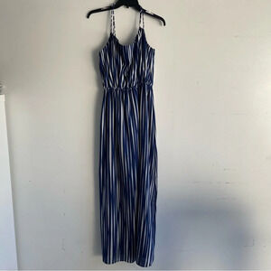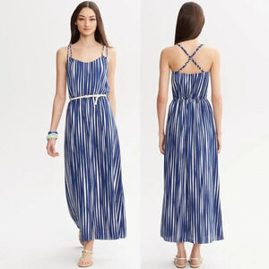 Banana Republic Blue White Striped Crisscross Spaghetti Strap Maxi Dress 22473