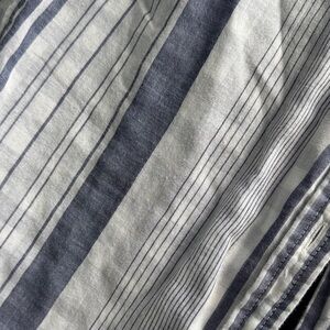 Casual button-down shirt with a stylish striped pattern. Features a blend of blue and gray tones. Perfect for versatile styling.