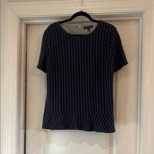This chic blouse from Banana Republic showcases a fitted silhouette with a peplum flair, crafted in a striking blue and white color scheme. The structured design offers a polished appearance, perfect for elevating your professional or casual wardrobe.