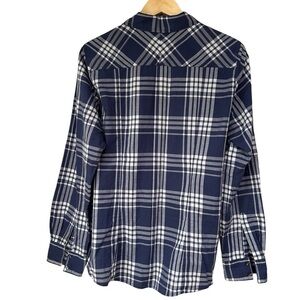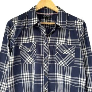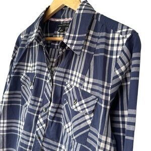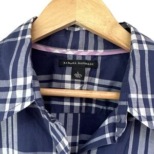 Banana Republic Blue and White Plaid Cotton Button Down Blouse, Large
